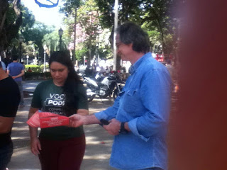 Fotos da panfletagem de sábado, 22 de julho, no calçadão de Ribeirão, em defesa da democracia, dos nossos direitos trabalhistas, previdenciários e pra contestar o julgamento injusto contra Lula. A energia de cada pessoa a favor do queremos fará a roda girar mais rápido no sentido que queremos.